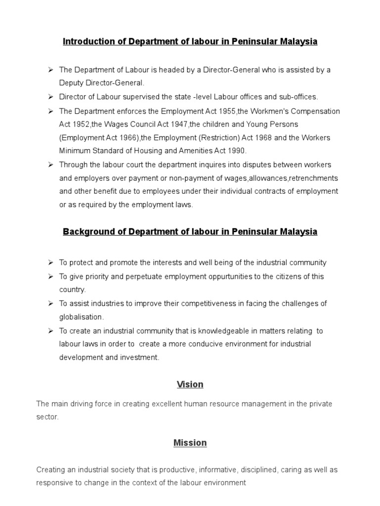 Introduction Of Department Of Labour In Peninsular Malaysia Pdf Layoff Employment